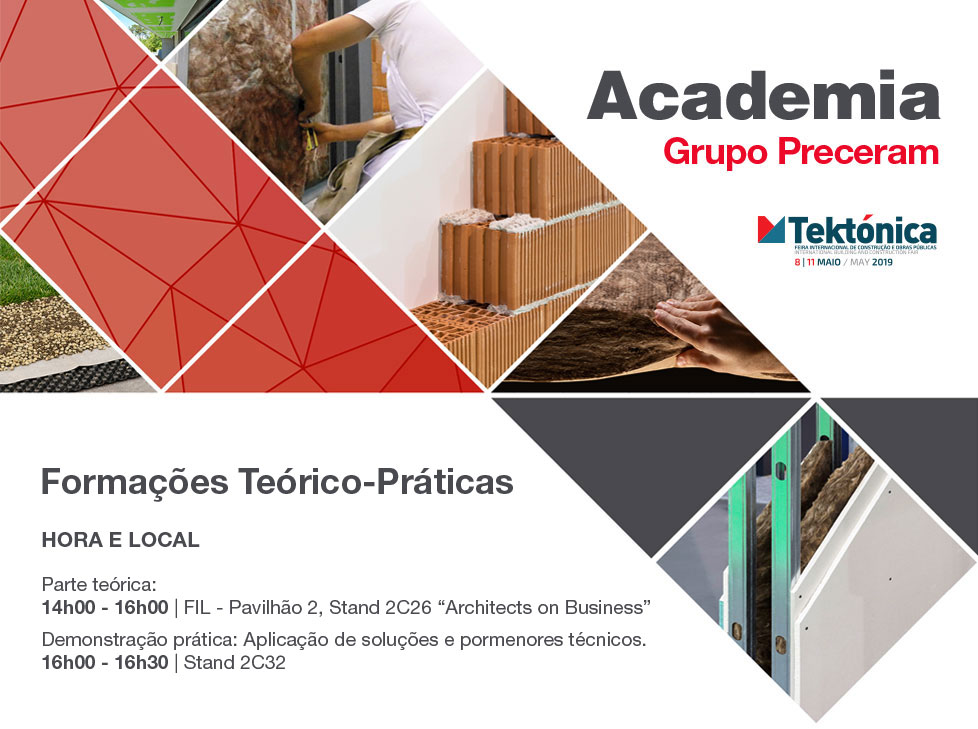 DESTINATÁRIOS: Intervenientes no setor da construção (Arquitectos, engenheiros, projetistas, estudantes, empresas de construção, donos de obra, técnicos de fiscalização e gestão de obras). A formação de dia 10 é exclusiva para aplicadores de placas de gesso. |